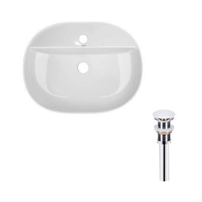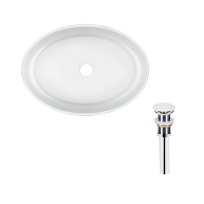 Комплект Qtap Kolibri: Раковина накладная овальная 500x360x140 мм White + Донный клапан PU02
