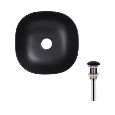 Комплект Qtap Kolibri: Раковина накладная квадратная 410x410x150 мм Matt Black + Донный клапан PU03