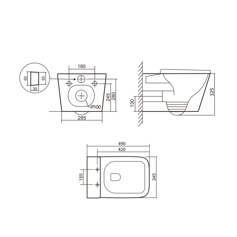 | Габариты изделия (ВхШхГ), мм | Унітаз: 355х340х485. Сидіння для унітаза: 55х345х435 |