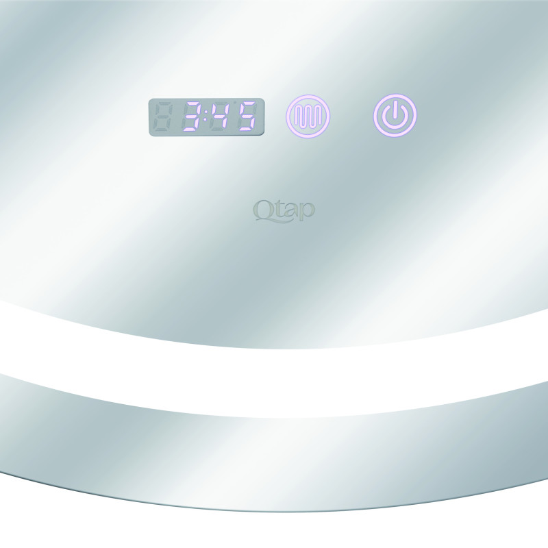 Зеркало Qtap Mideya с антизапотеванием 800х800 QT2078NCR8080W укомплектовано светодиодной LED лентой с ровным, насыщенным свечением холодного белого цвета. LED лента не создает негативного влияния на зрение человека. В зеркале предусмотрена функция ANTI-FOG - защита от запотевания. Управление осуществляется двумя сенсорными кнопками на передней части зеркала, диммер позволяет регулировать яркость подсветки. В зеркало вмонтированы часы и индикатор температуры окружающей среды в градусах Цельсия.