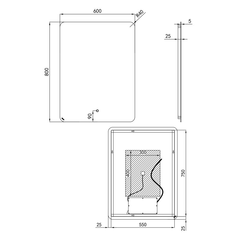 Зеркало Qtap Scorpio 600x800 с LED-подсветкой и антизапотеванием, Reverse QT14781003W