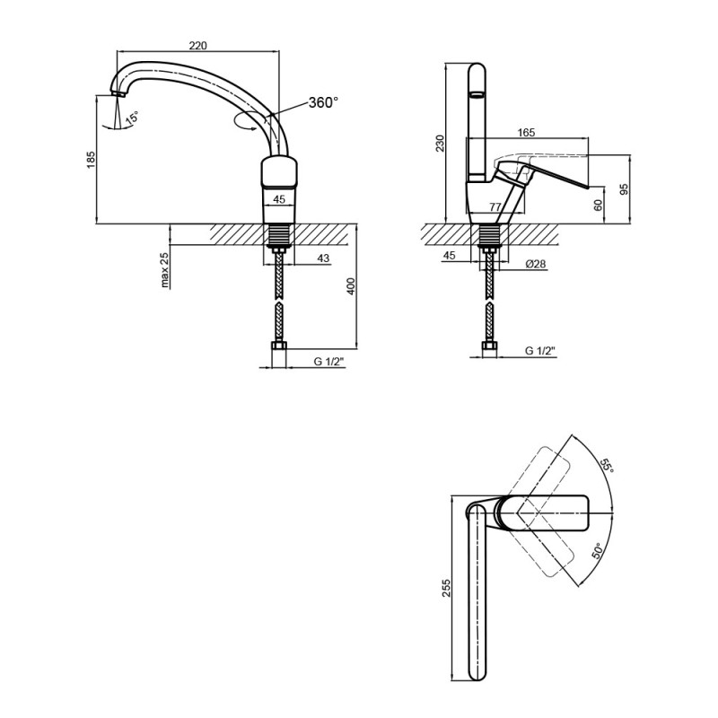 Довжина зливу, мм | 220 |