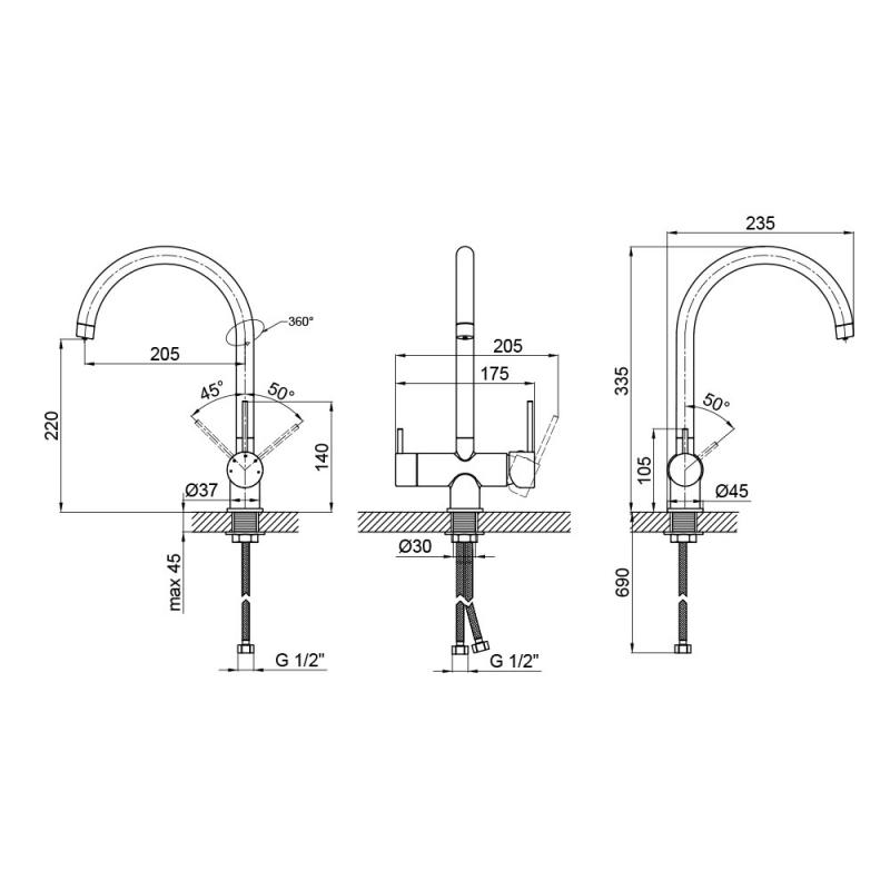 Диаметр подключения | 1/2" |