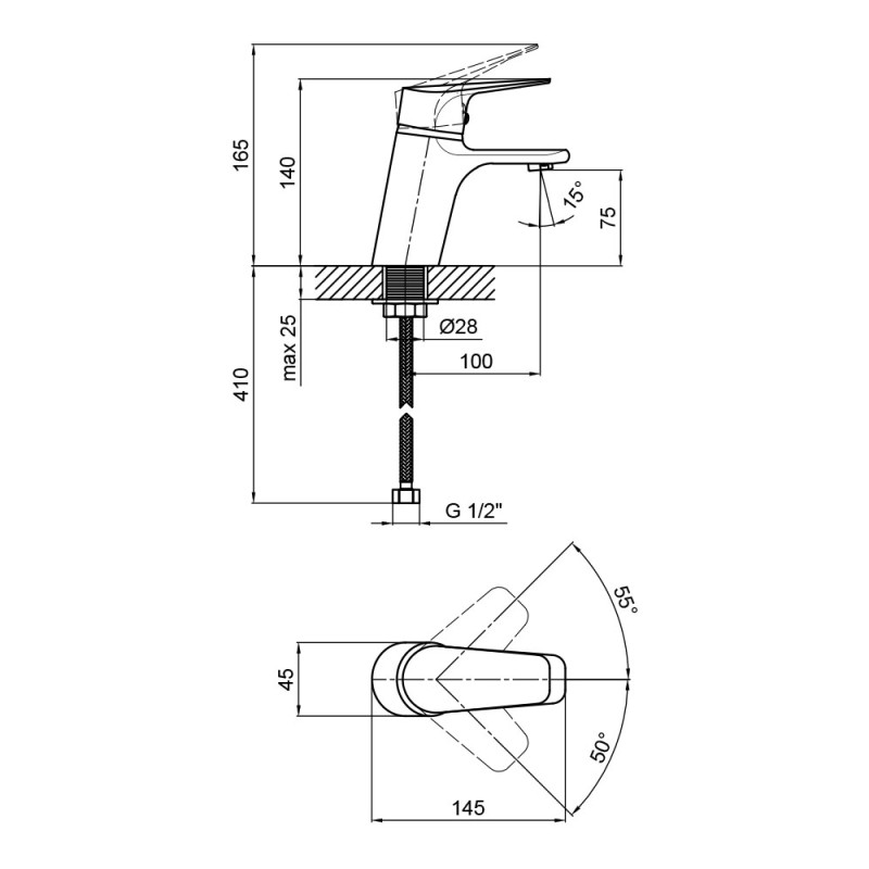 | Высота излива, мм | 75 |