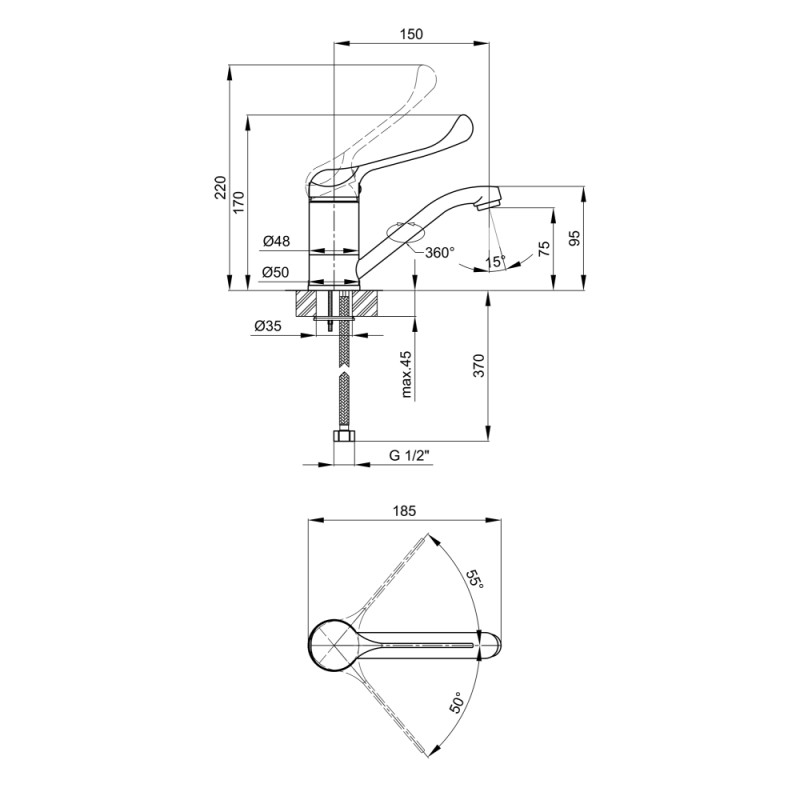 Высота излива, мм | 75 |
