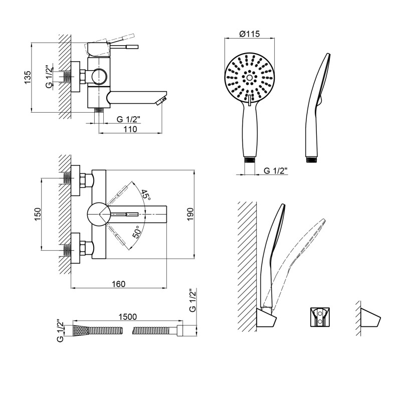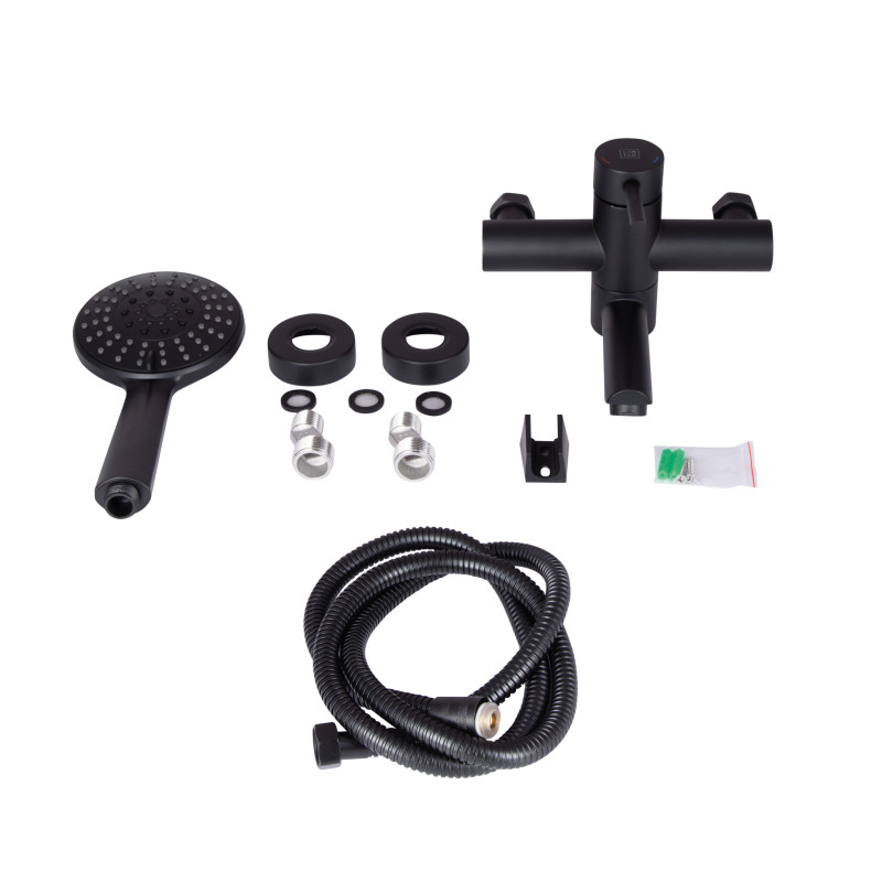 Комплектация | Змішувач, лійка для ручного душу, душовий шланг, кронштейн для ручного душу, кріплення. |