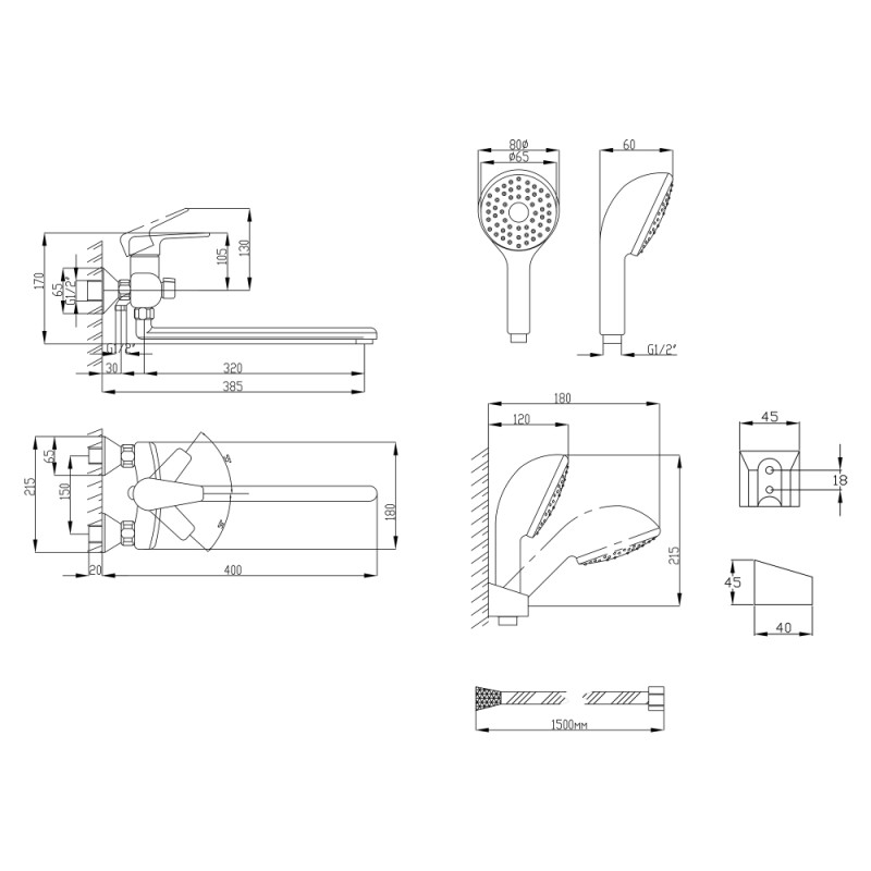Комплектация | Змішувач, лійка для ручного душу, душовий шланг, тримач для ручного душу, кріпильні деталі. |