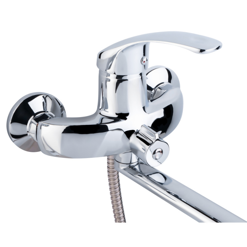 Змішувач для ванни Lidz (CRM) Mars 81 005-1 New виготовлено із латуні, має довгий вилив і зручне руків‘я. Для вмикання подачі води досить підняти та повернути його в потрібне положення. Змішувач та тримач лійки монтуються на стіну за допомогою кріпильних елементів, які є в комплекті. Круглі хромовані розетки приховають похибки монтажу на обробці ванної кімнати. Перемикання на ручний душ виконується поворотним дивертором.