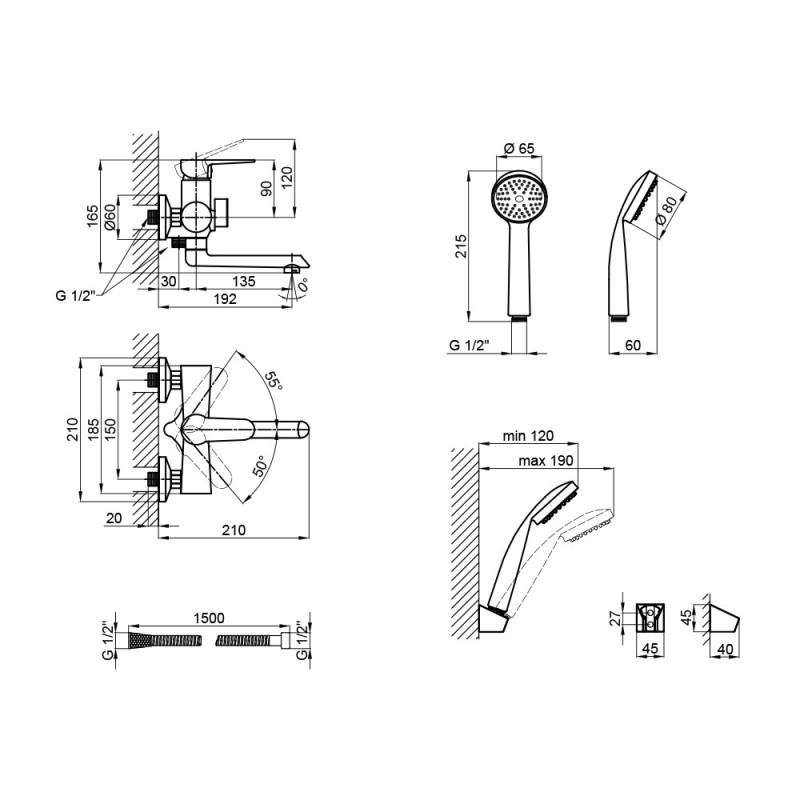 Комплектация | Змішувач, лійка для ручного душу, душовий шланг, тримач для ручного душу, кріпильні деталі. |